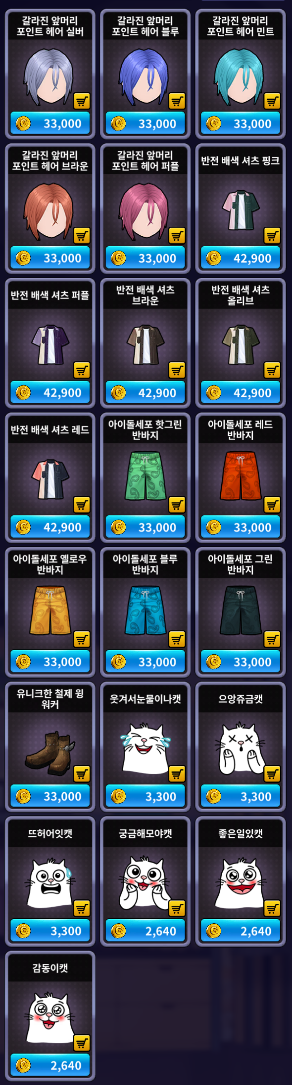 [골드 샵] 추가 상품 (남성)
