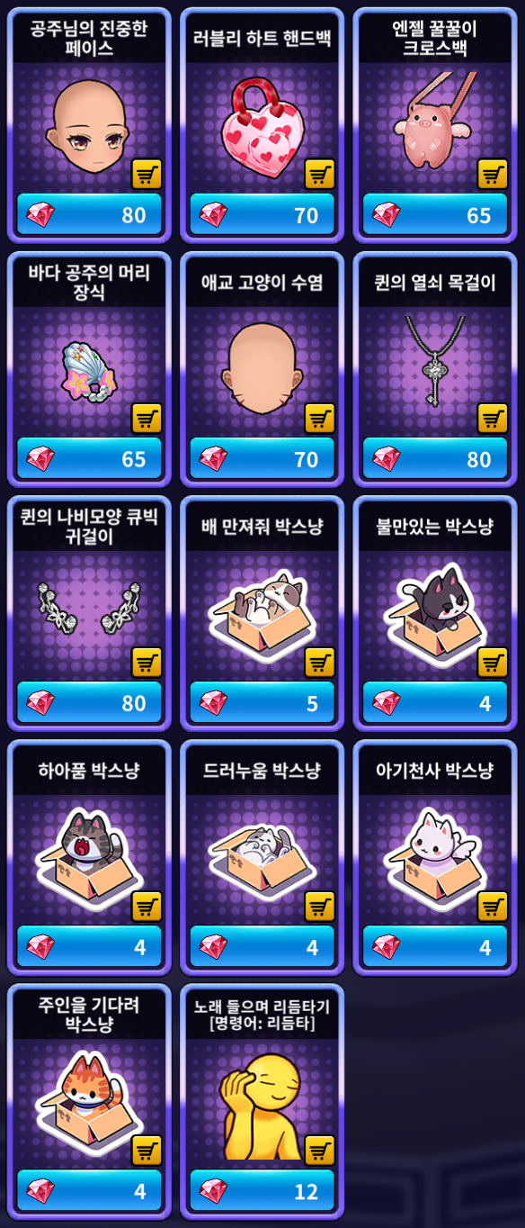 [루비 샵] 추가 상품 (여성)