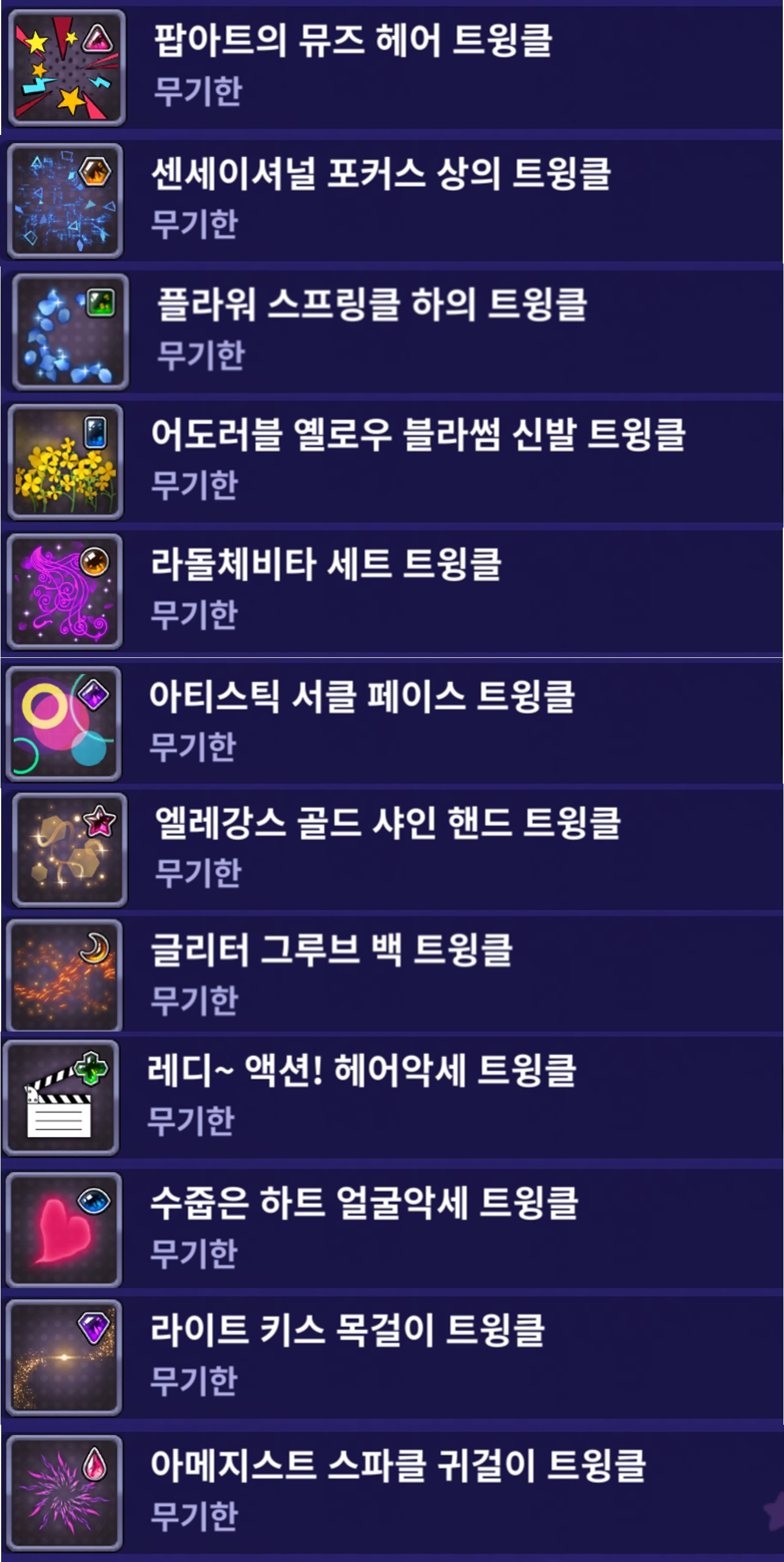 | 신규 트윙클 장착 미리보기 |