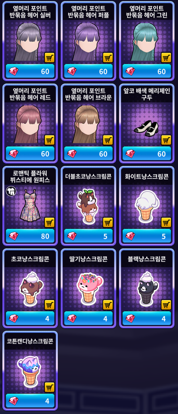 [골드 샵] 추가 상품 (공통)