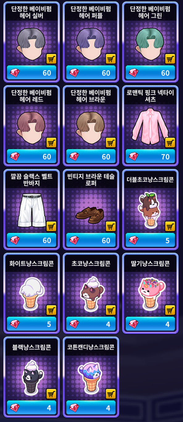 [루비 샵] 추가 상품 (남성)