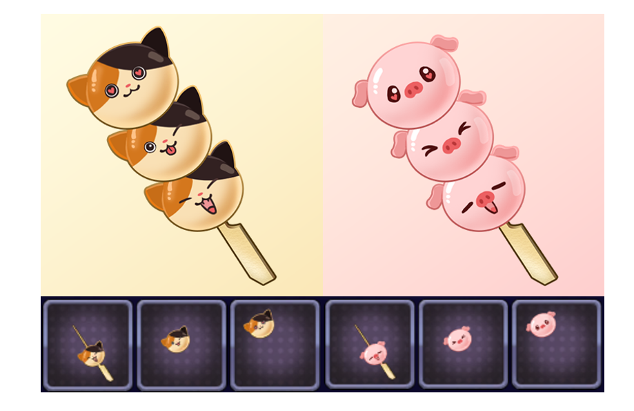 | 신규 팸 마크 - 삼색냥이 당고, 핑크꿀꿀 당고 |