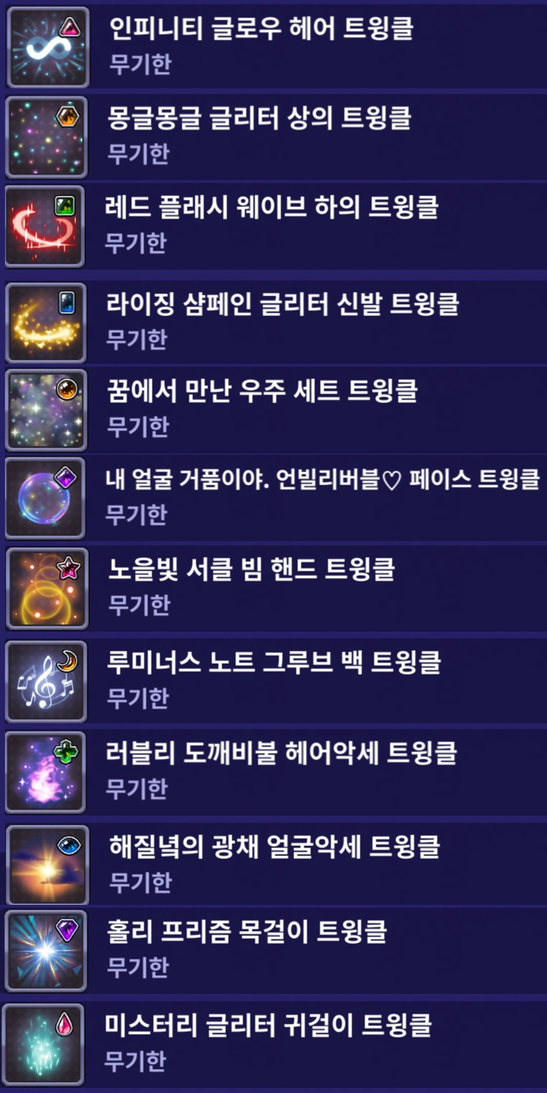 | 신규 트윙클 장착 미리보기 |