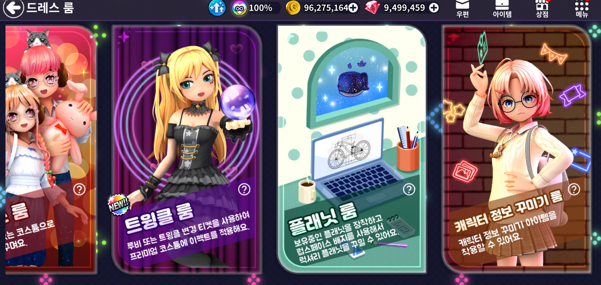 □ 드레스룸에 플래닛 룸과 캐릭터 정보 꾸미기 룸이 추가됩니다.