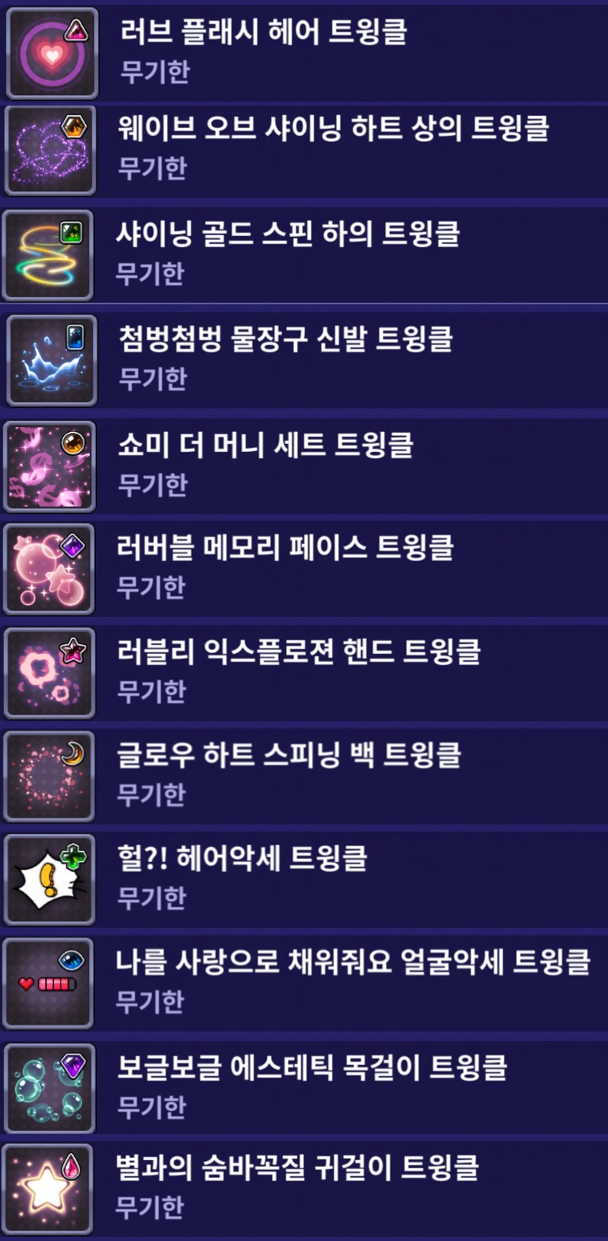 | 신규 트윙클 장착 미리보기 |