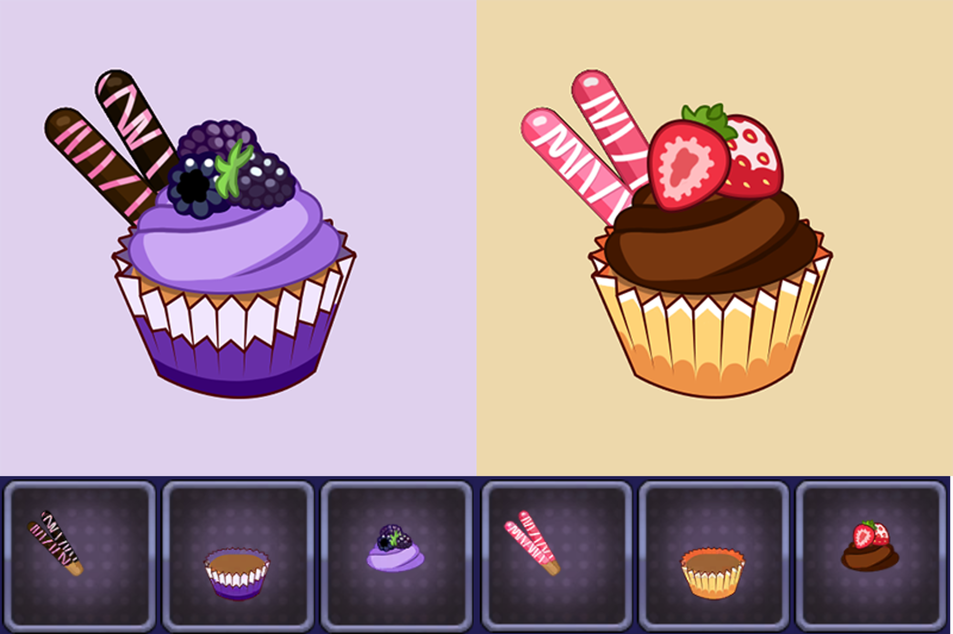 | 신규 팸 마크 - 진한 블랙베리 컵케이크, 꾸덕 초코 딸기 컵케이크 |