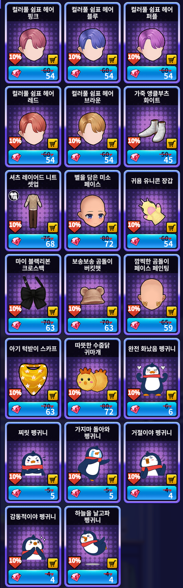 [루비 샵] 추가 상품 (여성)