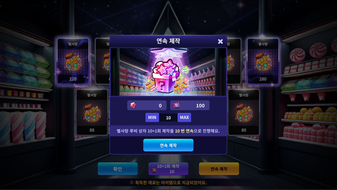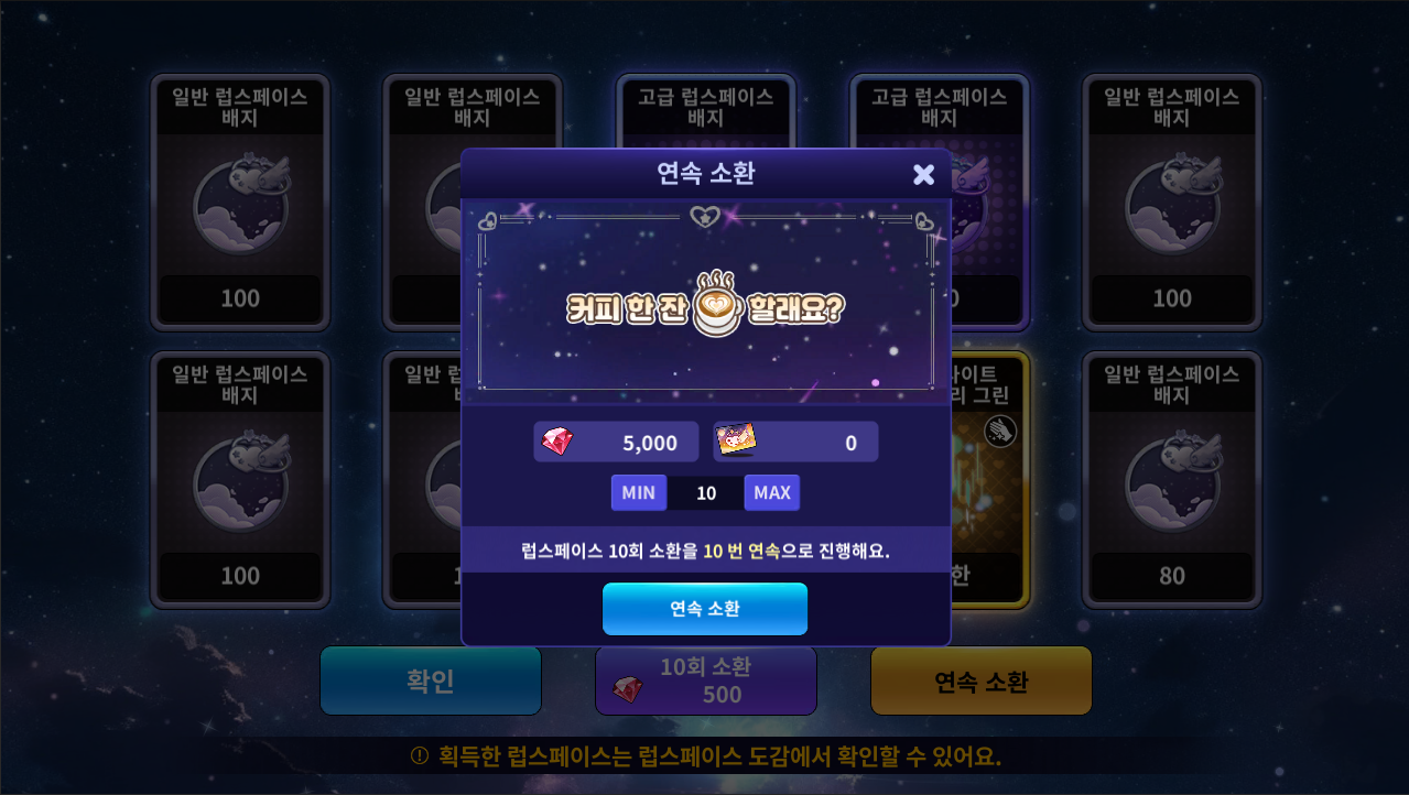 □ '별사탕 제작소'와 '럽스페이스 소환'에서 연속 소환 기능이 추가됩니다. (최대 10회 연속 소환 가능)