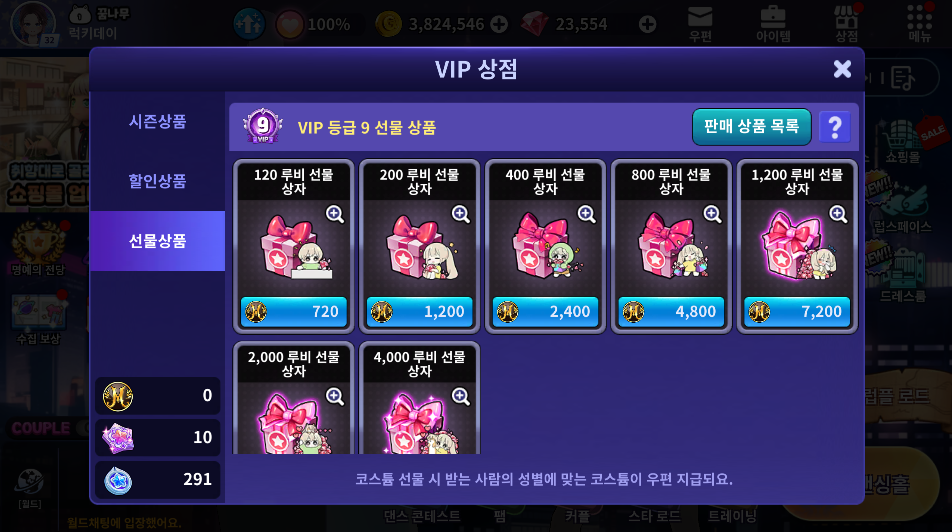 □ VIP 상점에 [선물상품] 탭이 새롭게 추가됩니다.