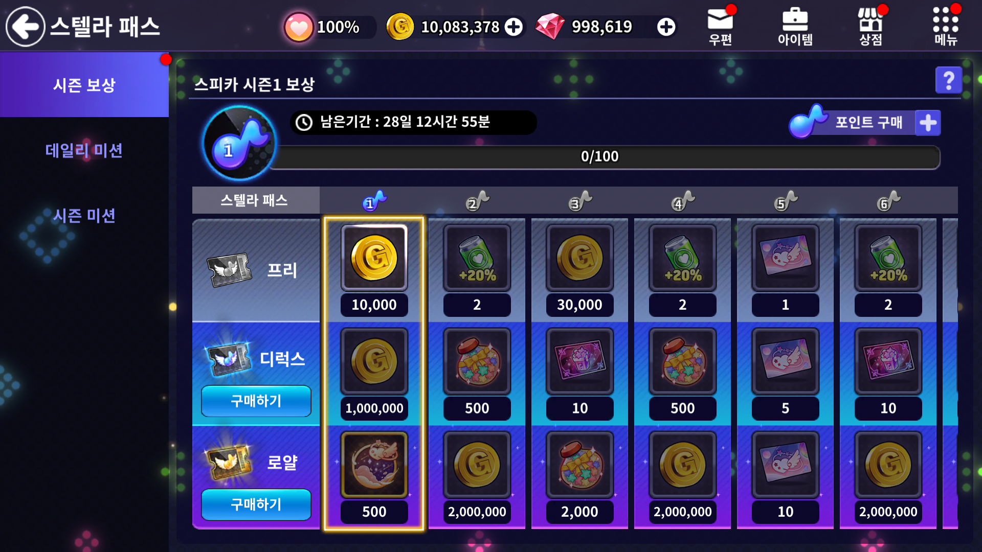 | 특별뮤즈 | 565 | 565 | 565 | 565 | 282.5 | 282.5 | 282.5 | 141.25 | |
