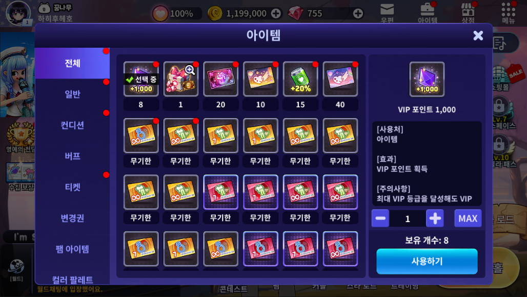 | 닉네임 꾸미기 아이템 착용 미리보기 |