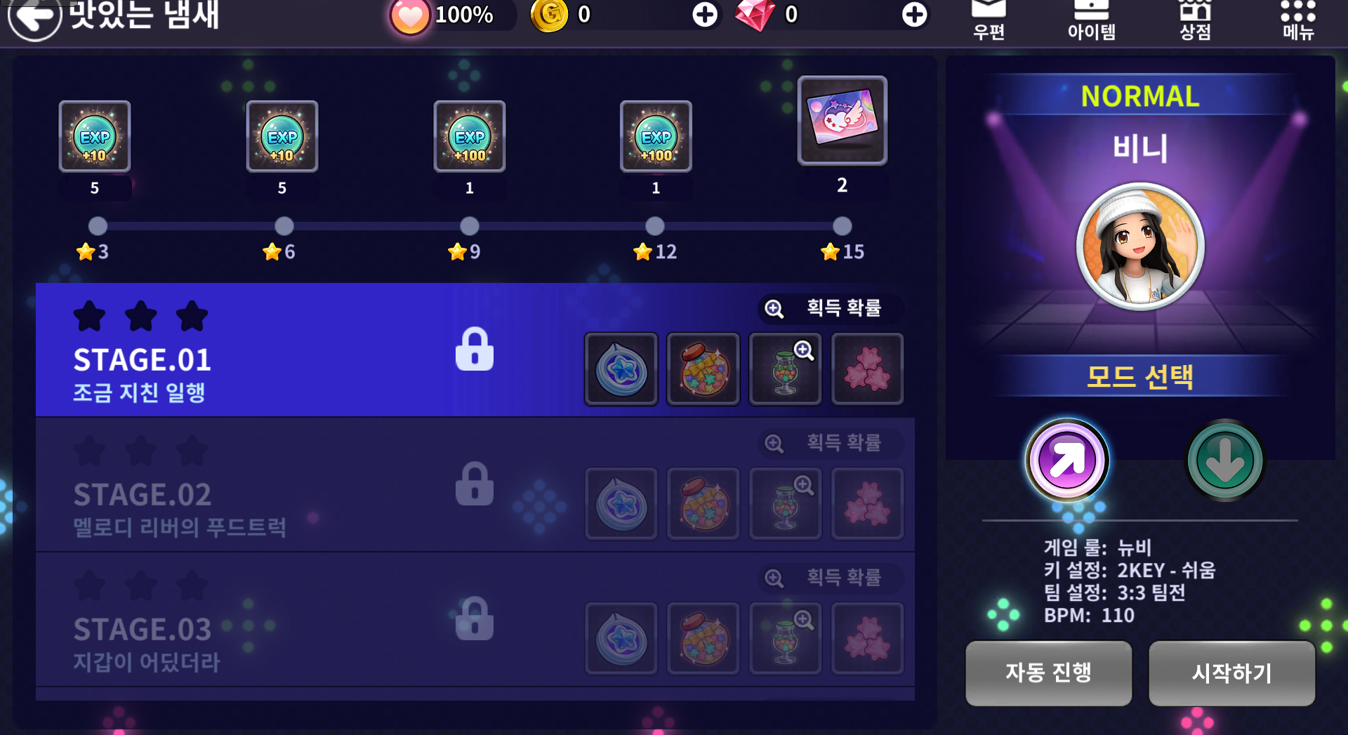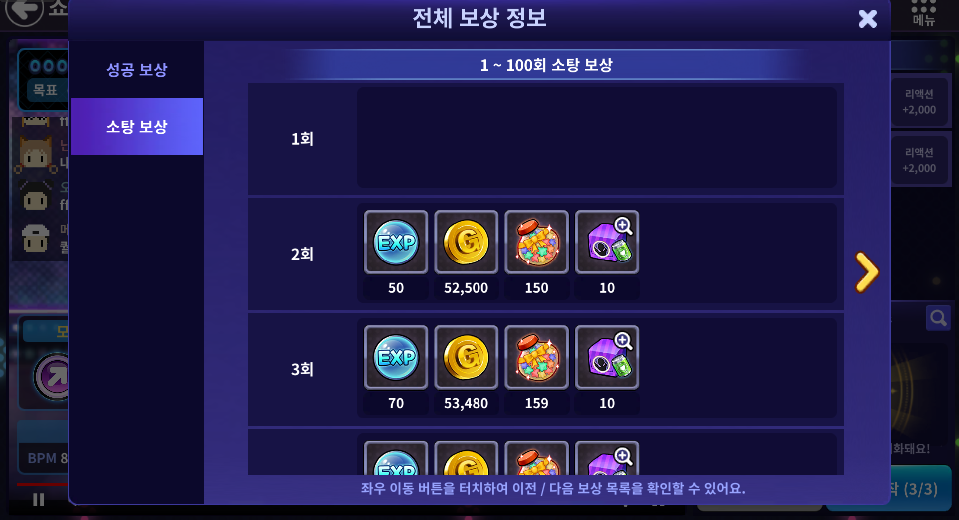 📌쇼댄서 방송 스테이지의 전체 보상 정보를 확인할 수 있는 탭이 추가됩니다. (성공/소탕 보상 모두 포함)