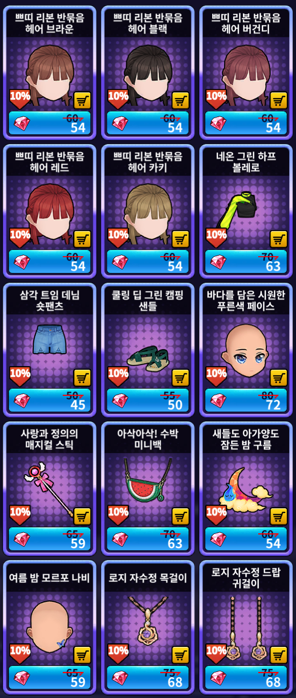 [루비 샵] 추가 상품 (여성)